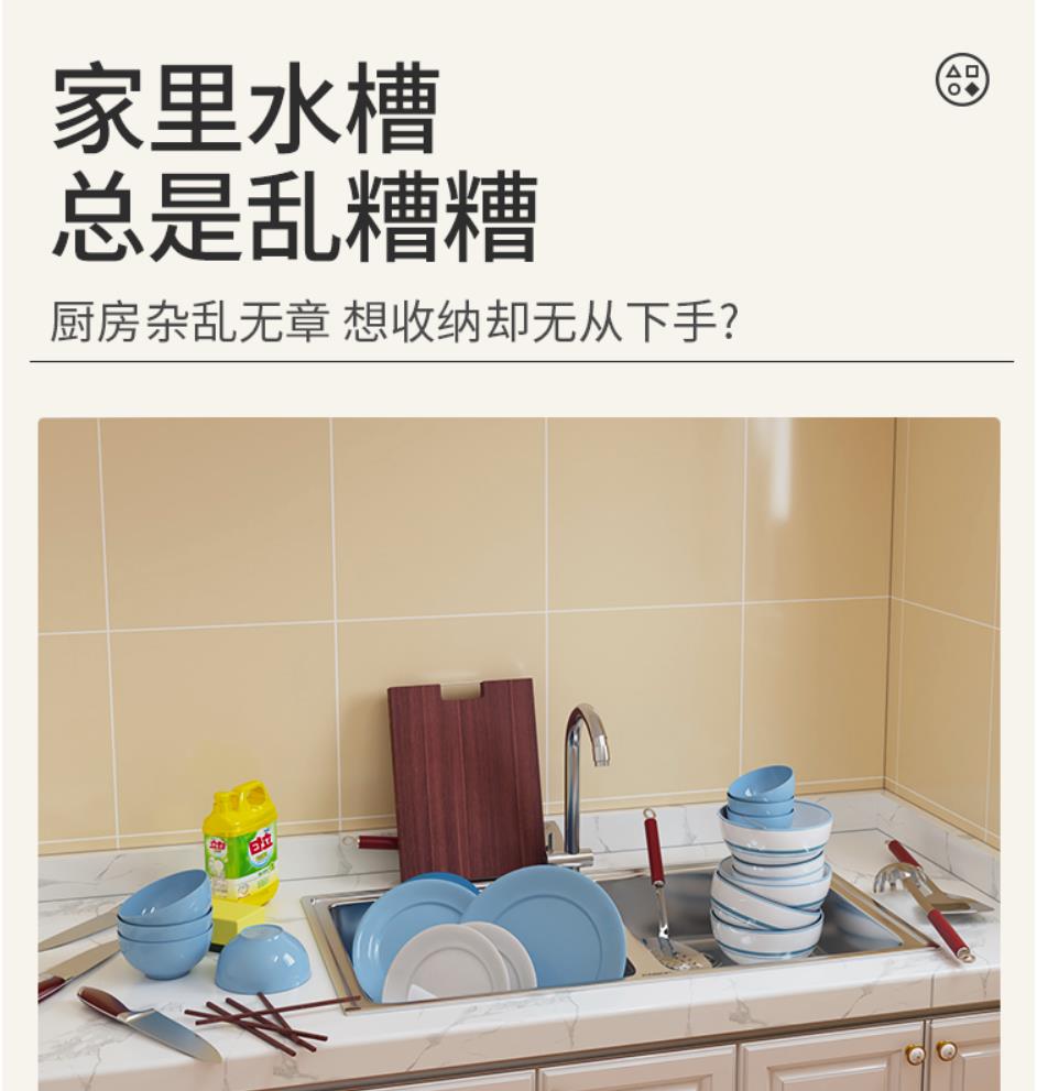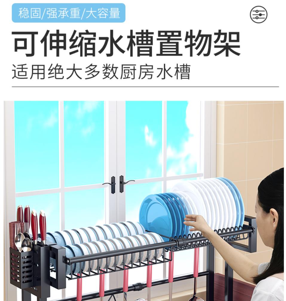 朝暮之家厨房置物架碗架不锈钢水槽置物架可伸缩水池放碗碟架厨具用品