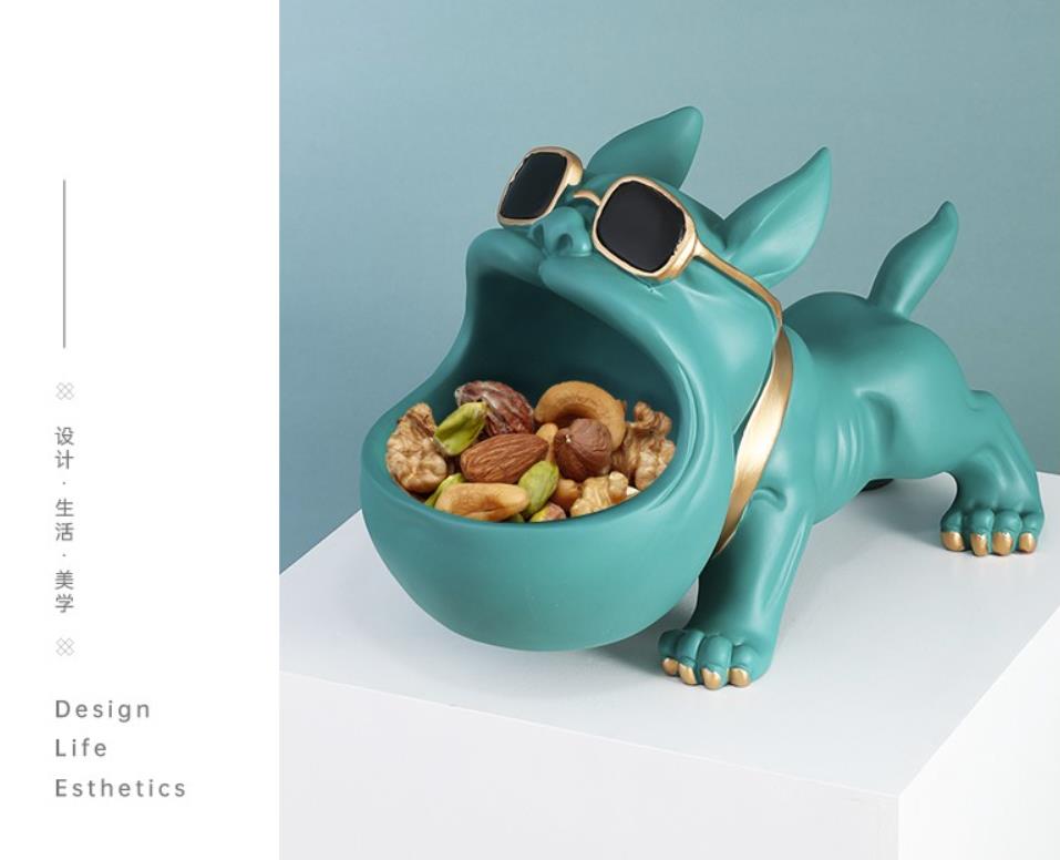聚善缘 狗收纳摆件斗牛犬创意家居装饰玄关钥匙电视柜客厅茶几简约现代送礼乔迁新居礼品 QM-010绿色斗牛犬30*15*20厘米 礼盒装
